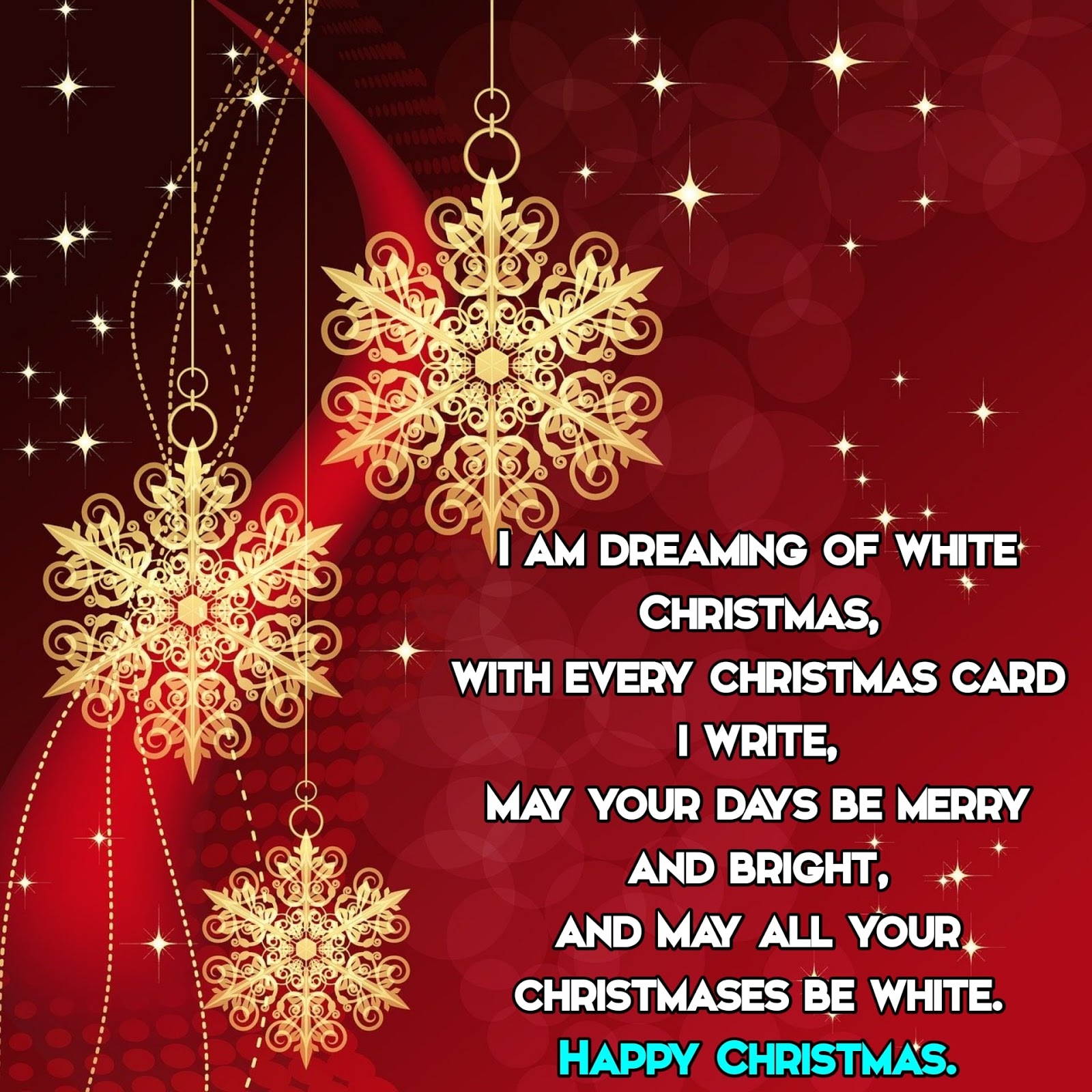- I am dreaming😍 of white Christmas, with every Christmas card💳 I write, May your days be merry and bright And may all your Christmases be white😍. Merry Christmas to you❤ and your family.👪