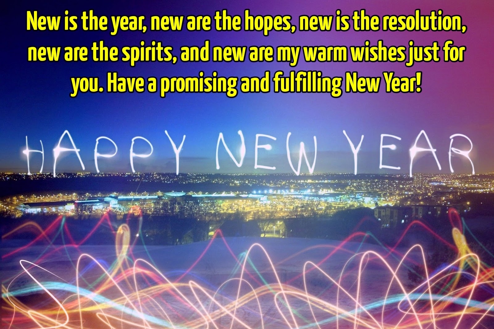 New is the year, new are the hopes, new is the resolution, new are the spirits, and new are my warm wishes just for you. Have a promising and fulfilling New Year